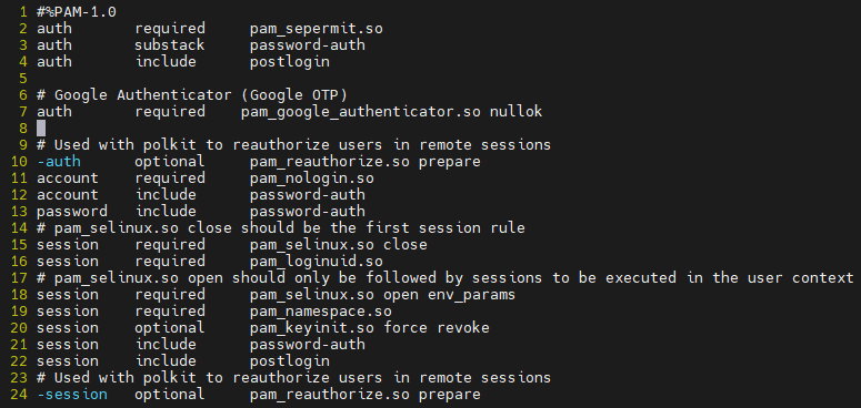 vi /etc/pam.d/sshd