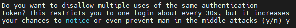 6. 인증 토큰을 시간 기반으로 할지 여부 y 입력 후 QR 스캔!!