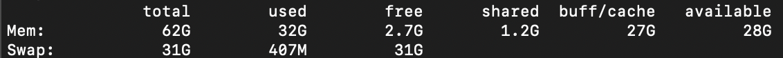 buff/cache : 커널 버퍼로 사용 및 페이지 캐시에 사용중인 크기