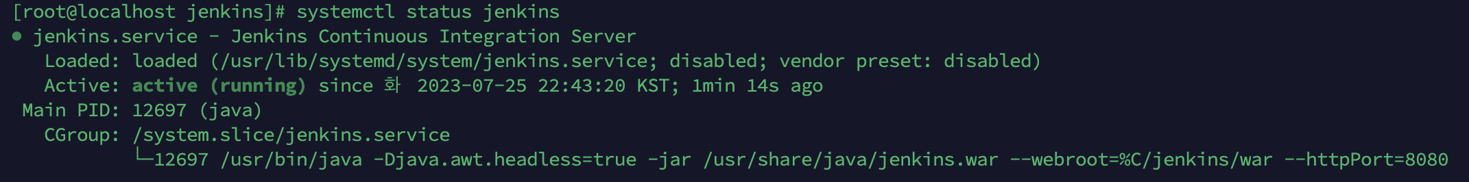 systemctl status jenkins로 확인해보니 /usr/lib/systemd/system/jenkins.service 이곳에서 뭔가 httpPort=8080 물고 있는것을 확인했다.