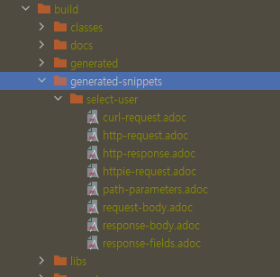 테스트 수행시 build/generated-snippets/ 하위에 지정한 문자열의 폴더와 문서가 생성
